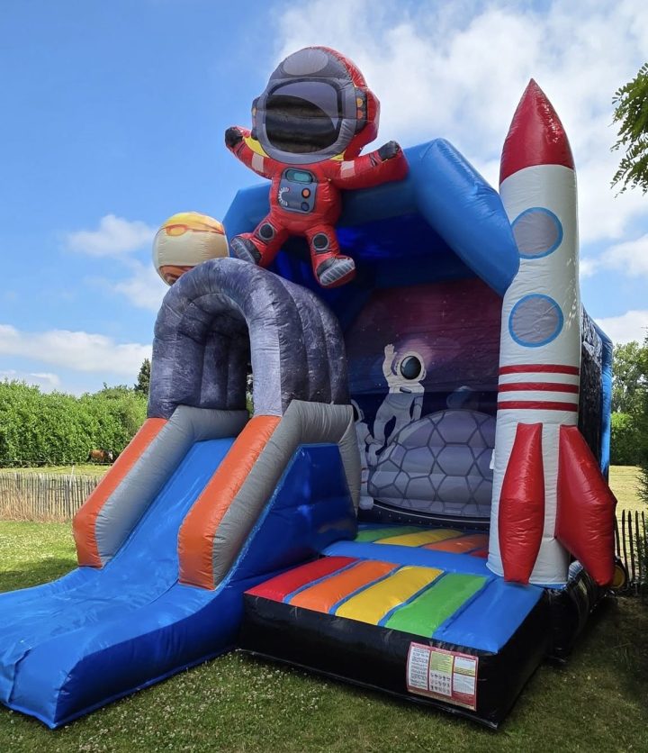 Embarquez pour une aventure intergalactique avec notre château gonflable sur le thème de l’espace ! Parfait pour les petits astronautes en quête de sensations, ce jeu coloré et dynamique invite à sauter, grimper et explorer comme dans une mission spatiale.