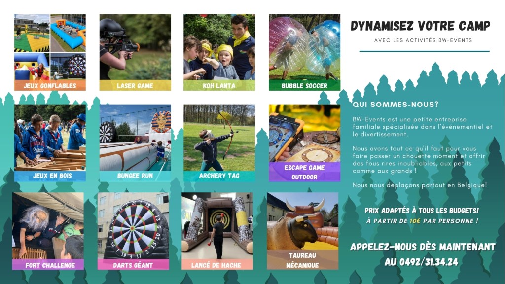 SCOUTS Vous êtes à la recherche d’une activité avec votre troupe ou votre camp, nous nous déplaçons partout en Belgique. Pour toutes demande contactez nous : 0478 17 30 62 ou au 0492 31 34 24 J’aime chargement…